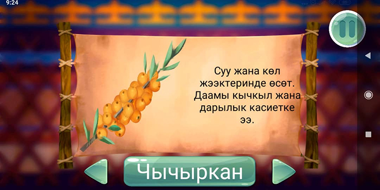 Разделы «Животные» и «Растения» представлены десятком изображений с названиями на государственном языке. О представителях флоры есть еще краткое описание. Тоже на кыргызском.