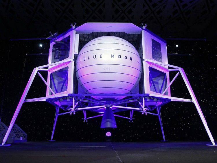 «Настало время вернуться на Луну, на этот раз, чтобы остаться», — заявил Джефф Безос на закрытом мероприятии для журналистов и работников космической сферы. Он показал макет в натуральную величину аппарата для высадки на спутник Земли. Посадочный модуль назвали Blue Moon.