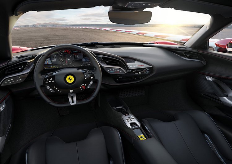 В интерьере по-прежнему будут неудобства, характерные для автомобилей такого уровня, однако есть климат-контроль с отдельным тачпадом регулировок. SF90 Stradale получил большой дисплей приборной панели диагональю 16 дюймов и рулевое колесо с сенсорными элементами управления светом, телефоном и другими функциями.
