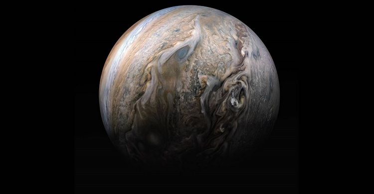 NASA опубликовало фотографию вихревых облаков на поверхности Юпитера, которые образуют красивый рисунок. Она появилась на сайте Национального аэрокосмического агентства.