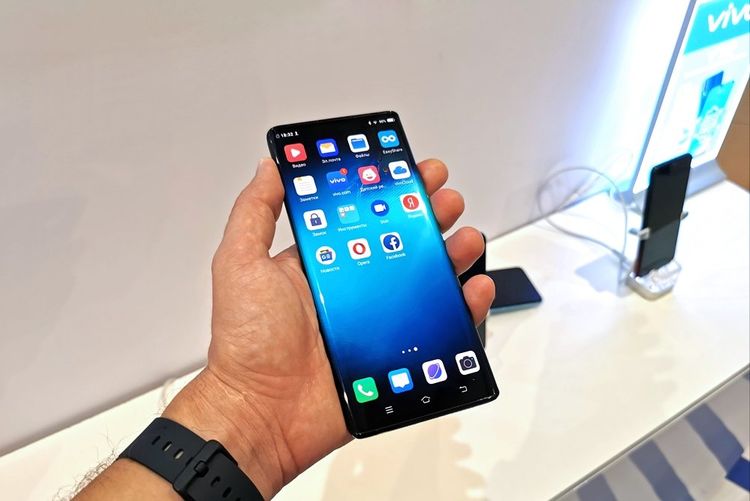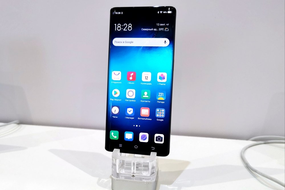 Vivo назвала экран Waterfall FullView, матрица у него — POLED с разрешением 2256×1080 точек.