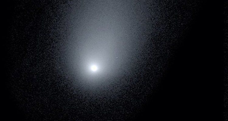 Белый, призрачный саван, окружающий комету, называется комой. Это облако газов и ледяной крошки, окружающее ядро. В данном случае его протяженность составляет невероятные 160 тысяч километров!