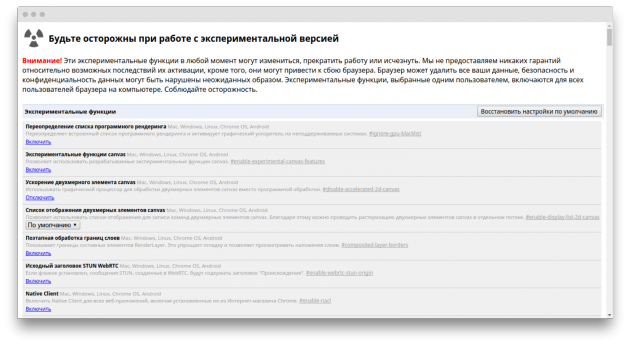 В Chrome раздел с экспериментальными настройками находится по адресу chrome://flags. Именно здесь программисты Google прячут от глаз неопытных пользователей новые, необкатанные функции браузера. Но несколько из них можно безопасно активировать и использовать уже сейчас.