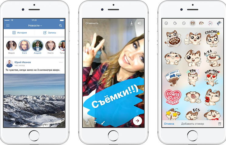 «Вы можете делать фотографии или снимать видеоролики до 12 секунд. Добавьте граффити, стикеры или текст, расскажите о том, что вы делаете сейчас, или поздравьте друзей с наступающими праздниками», - пояснил руководитель мобильных продуктов «ВКонтакте» Михаил Болдов.