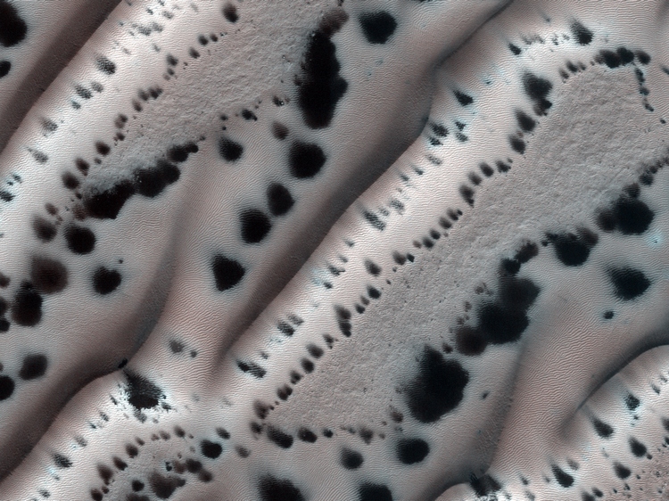 Специалисты пояснили, что с приходом холодов меняется внешний вид планеты. Так, углекислый газ из атмосферы превращается в сухой лед, который покрывает поверхность планеты и образует различные узоры.