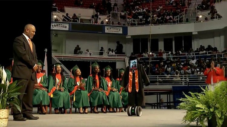 Однако руководство системы государственных школ округа решило выручить девушку. Чиновники попросили фирму Double Robotics сконструировать устройство, которое позволило бы ученице хотя бы частично присутствовать на церемонии. В итоге получать диплом за Синтию приехал забавный робот.