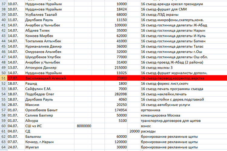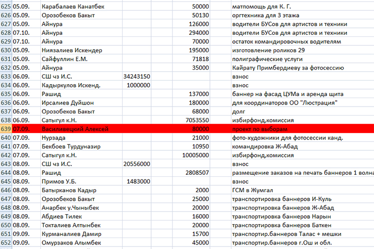 — Согласно опубликованной черной кассе предвыборного штаба, вам в общей сложности заплатили более полумиллиона долларов, вы же признались в получении только $170 тысяч. Остальные деньги направлены на какие-то мероприятия или их не было вообще?Но я могу сказать одно: арест по надуманным обвинениям Сапара Исакова и Кубанычбека Кулматова — это шаг с точки зрения морали совершенно недопустимый, чего бы политик от их шефа ни опасался. И совершенно несоразмерный мнимой «угрозе».