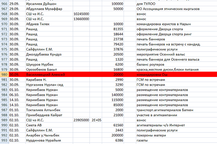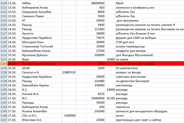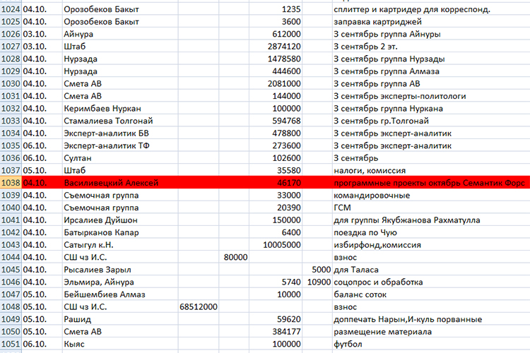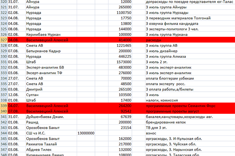 Появившиеся в социальных сетях данные о тратах в предвыборном штабе СДПК по-прежнему обсуждаются широкой общественностью. Экс-президент Кыргызстана Алмазбек Атамбаев реальность документа подтвердил, как и огромные цифры, указанные в нем.