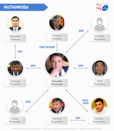 Еще на прошлой неделе глава Государственной службы финансовой разведки Гуламжан Анарбаев признался, что приходится родственником братьям Матраимовым. Об этом заявляли депутаты, но сам Анарбаев не комментировал.