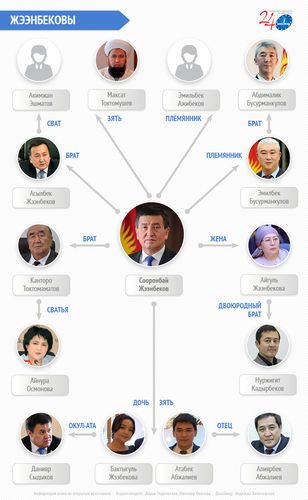 В прошлой публикации мы упоминали братьев и некоторых сватов президента. Однако родственные связи Сооронбая Жээнбекова, как оказалось, намного шире.