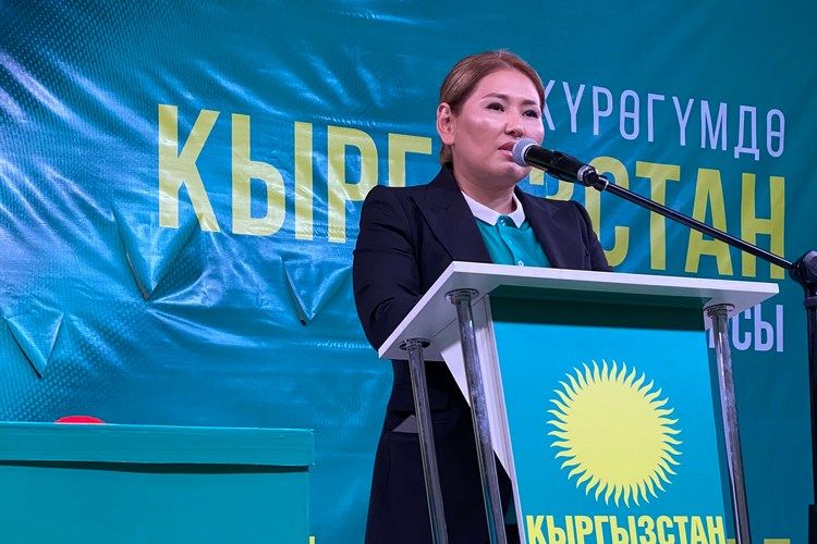 Наталья Кулматова, являющаяся кандидатом от партии, в своей речи напомнила о трудностях, с которыми столкнулись кыргызстанцы из-за эпидемии COVID-19.