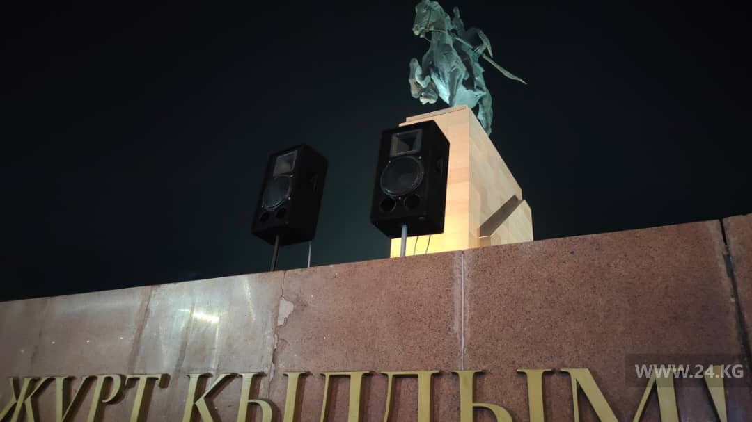 Возле памятника Айкол Манасу около десяти колонок. Сюда стягиваются молодые люди из числа сторонников кандидата в президенты Садыра Жапарова.