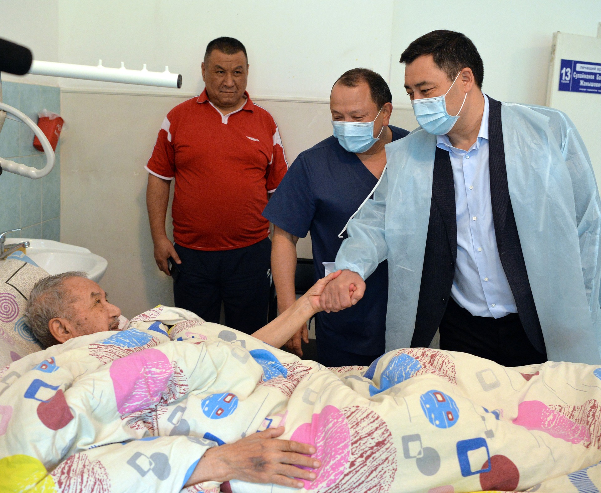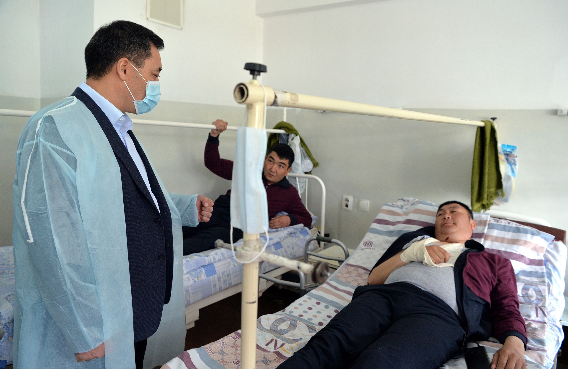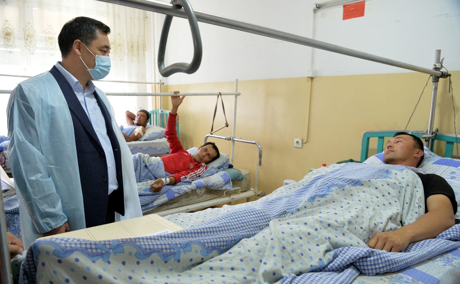 Президент Садыр Жапаров навестил пострадавших из Баткенской области, получающих лечение в Бишкекском научно-исследовательском центре травматологии и ортопедии. Об этом сообщили в пресс-службе главы государства.