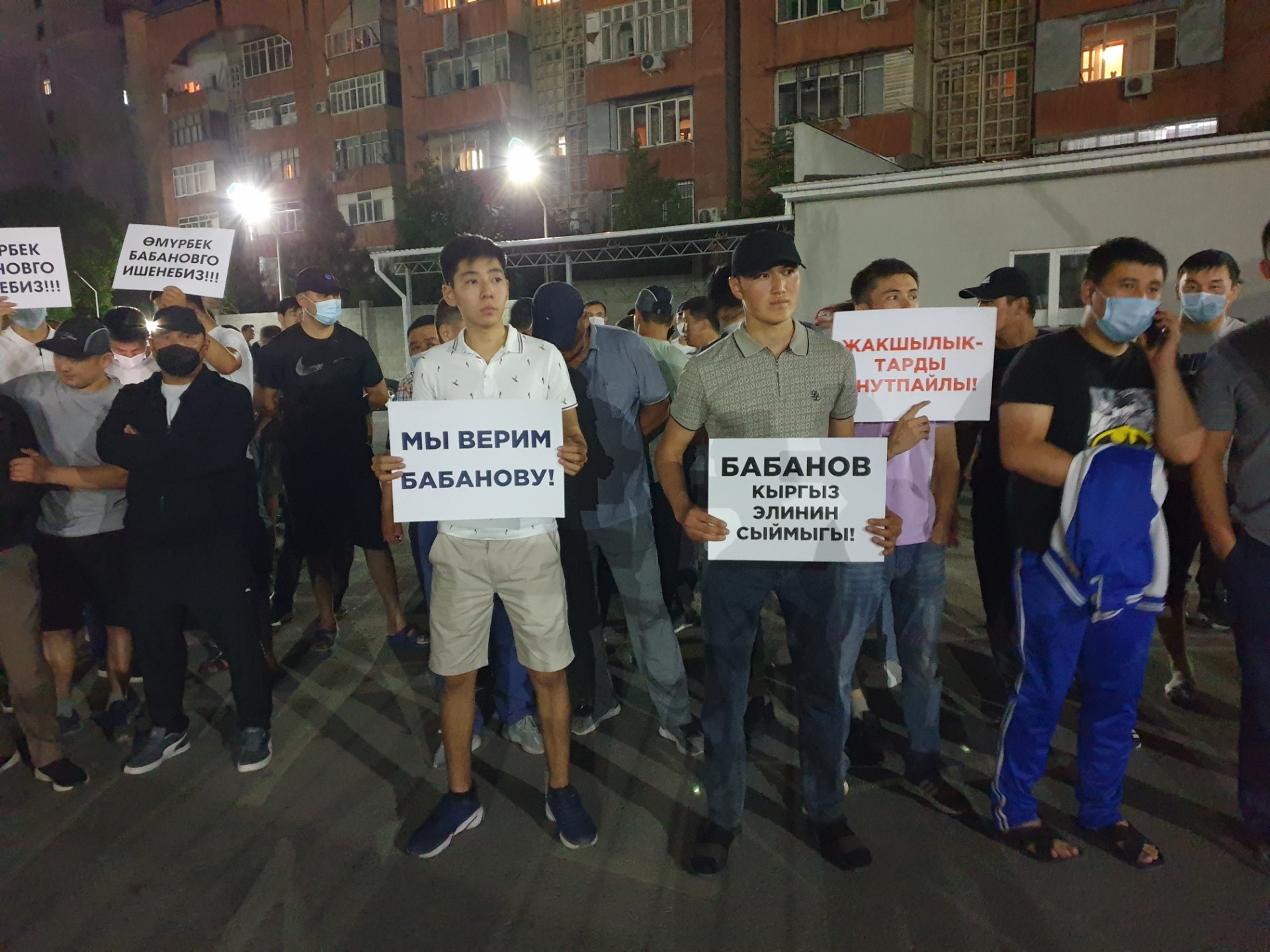 Сегодня около здания Первомайского районного суда Бишкека прошла акция в поддержку Омурбека Бабанова.