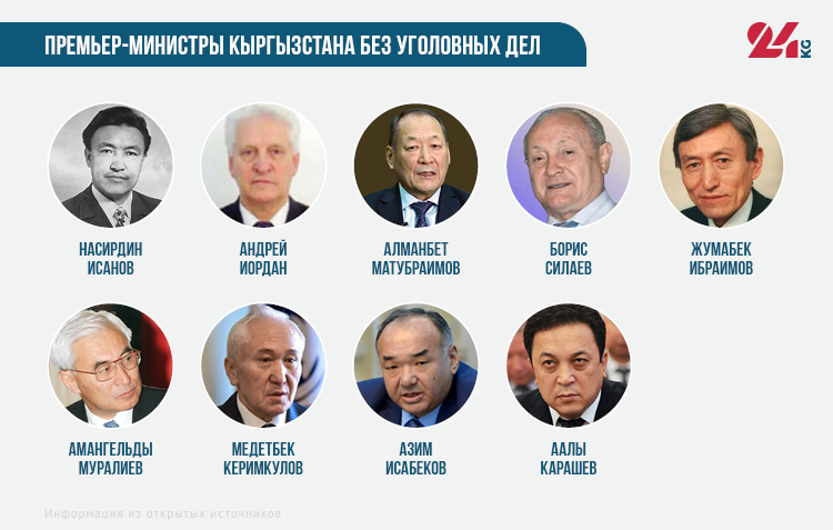 За всю историю независимого Кыргызстана в стране сменилось более 30 премьер-министров. Были те, кто руководил буквально несколько дней. Из них на сегодня только против девяти не возбудили ни одного уголовного дела.