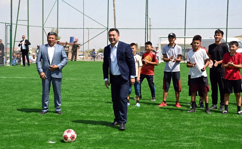 Садыру Жапарову рассказали, как восстанавливали село — обеспечили чистой питьевой водой, положили асфальт на 11-километровом участке дороги, установили уличное освещение, провели систему холодного и горячего водоснабжения, строят детсад.