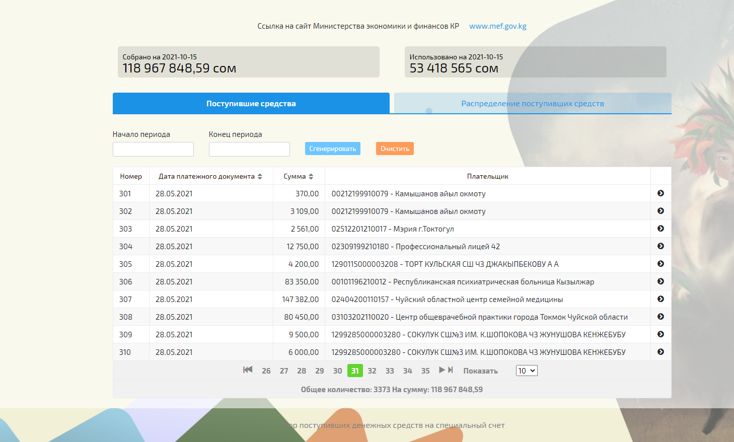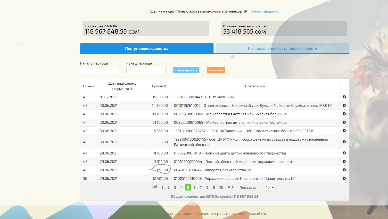 Самую большую сумму собрало полномочное представительство президента в Баткенской области. На специальном счете у аппарата обладминистрации саккумулировано почти 120 миллионов, включая 6 миллионов от мэрии Бишкека.