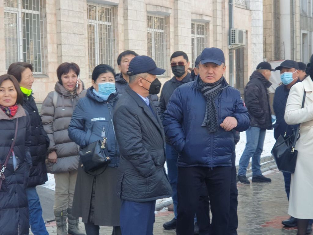 Около здания ЦИК собралось около 100 человек, не согласных с итогами голосования. Это представители партий «Улуттар биримдиги», «Ата Мекен», «Социал-демократы» и «Азаттык».