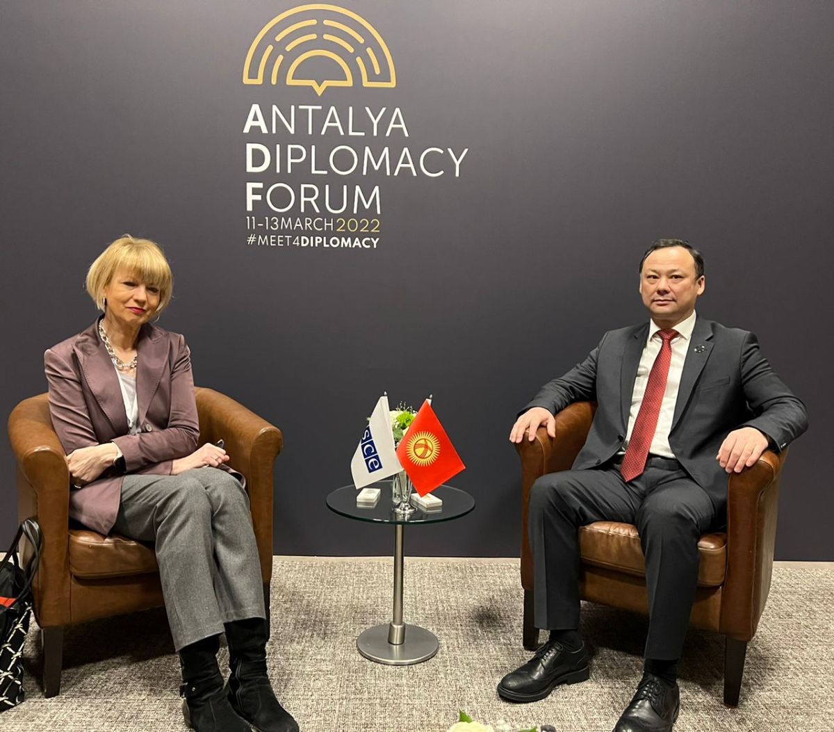Стороны также обсудили состояние и перспективы сотрудничества КР с ОБСЕ и ход подготовки к планируемому в мае 2022 года Совещанию высокого уровня «30-лет сотрудничества Центральная Азия — ОБСЕ».