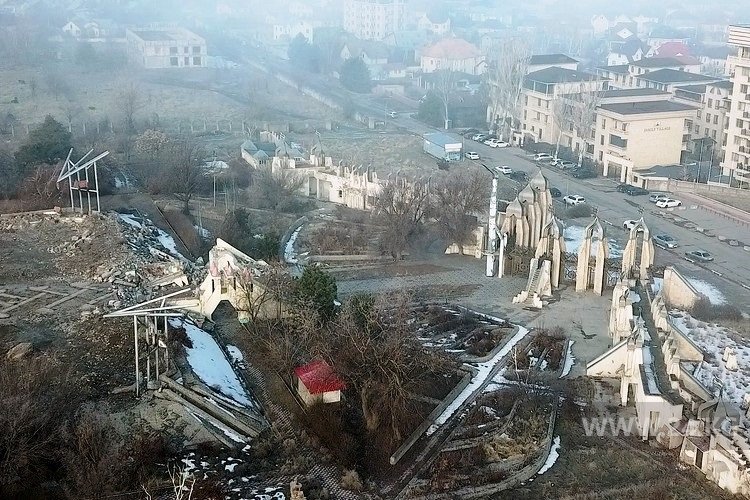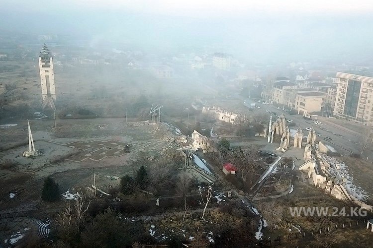 Совершенно иначе сегодня выглядит расположенный по соседству этнокомплекс «Манас Айылы». Большую часть его зданий и конструкций снесли.
