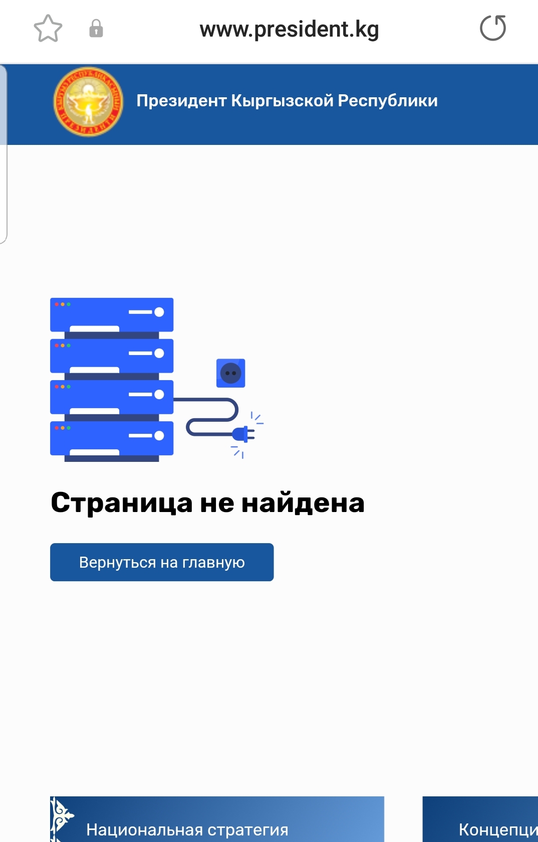 Официальный сайт президента Кыргызстана не открывается со вчерашнего, позднего, вечера.