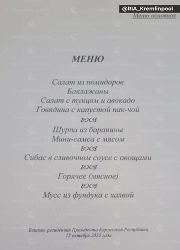Они показали меню для высокого гостя на обеде в Бишкеке.