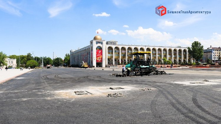 Ради высоких гостей на площади Ала-Тоо положили новый асфальт.