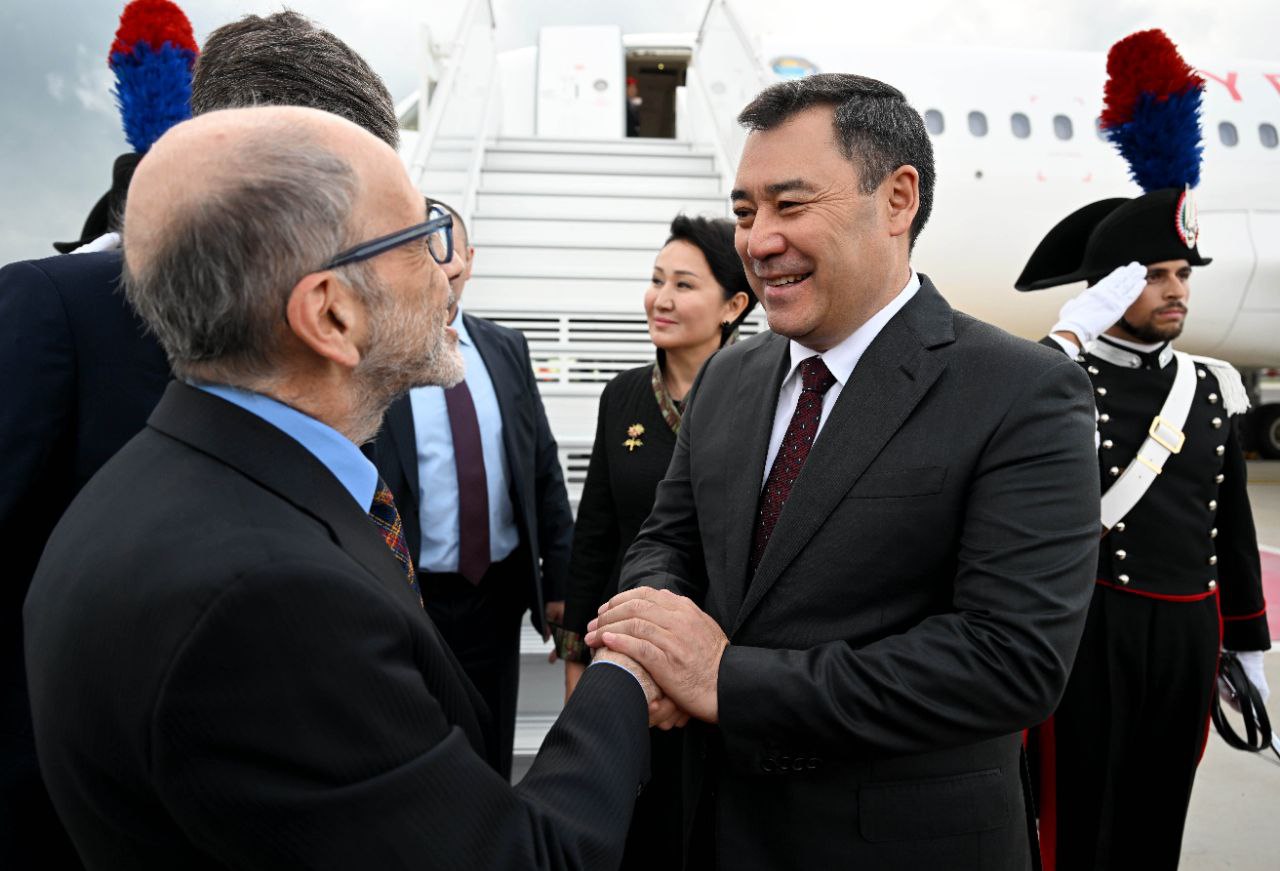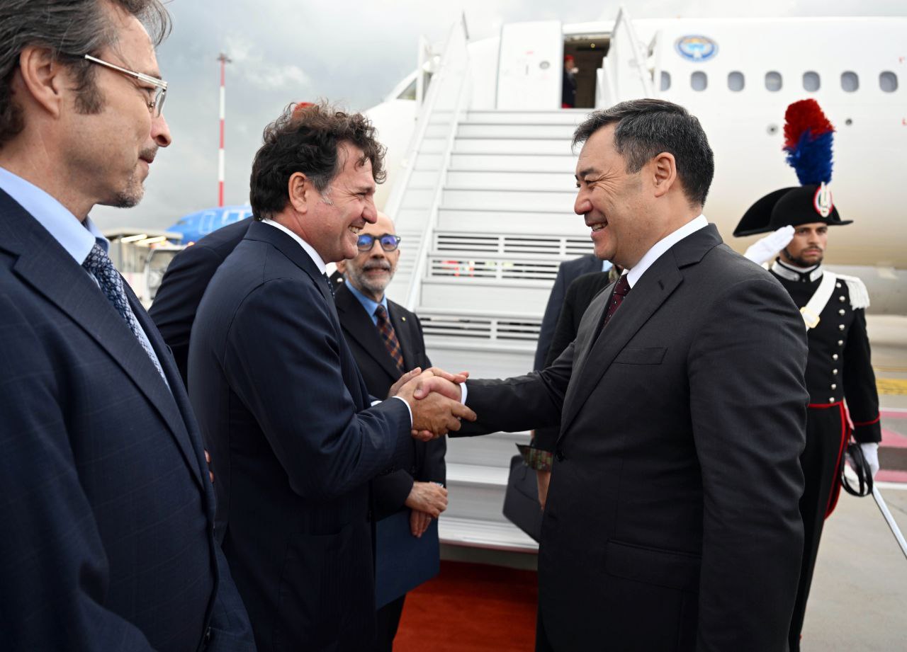 Накануне президент Садыр Жапаров с официальным визитом прибыл в Италию. Самолет главы государства приземлился в международном аэропорту Рима, где его и первую леди Айгуль Жапарову встретили представители итальянской и ватиканской сторон. Об этом сообщает пресс-служба президента.