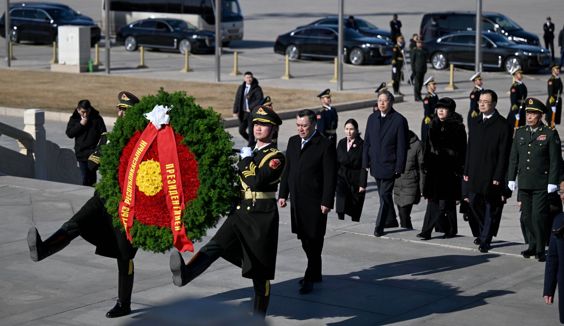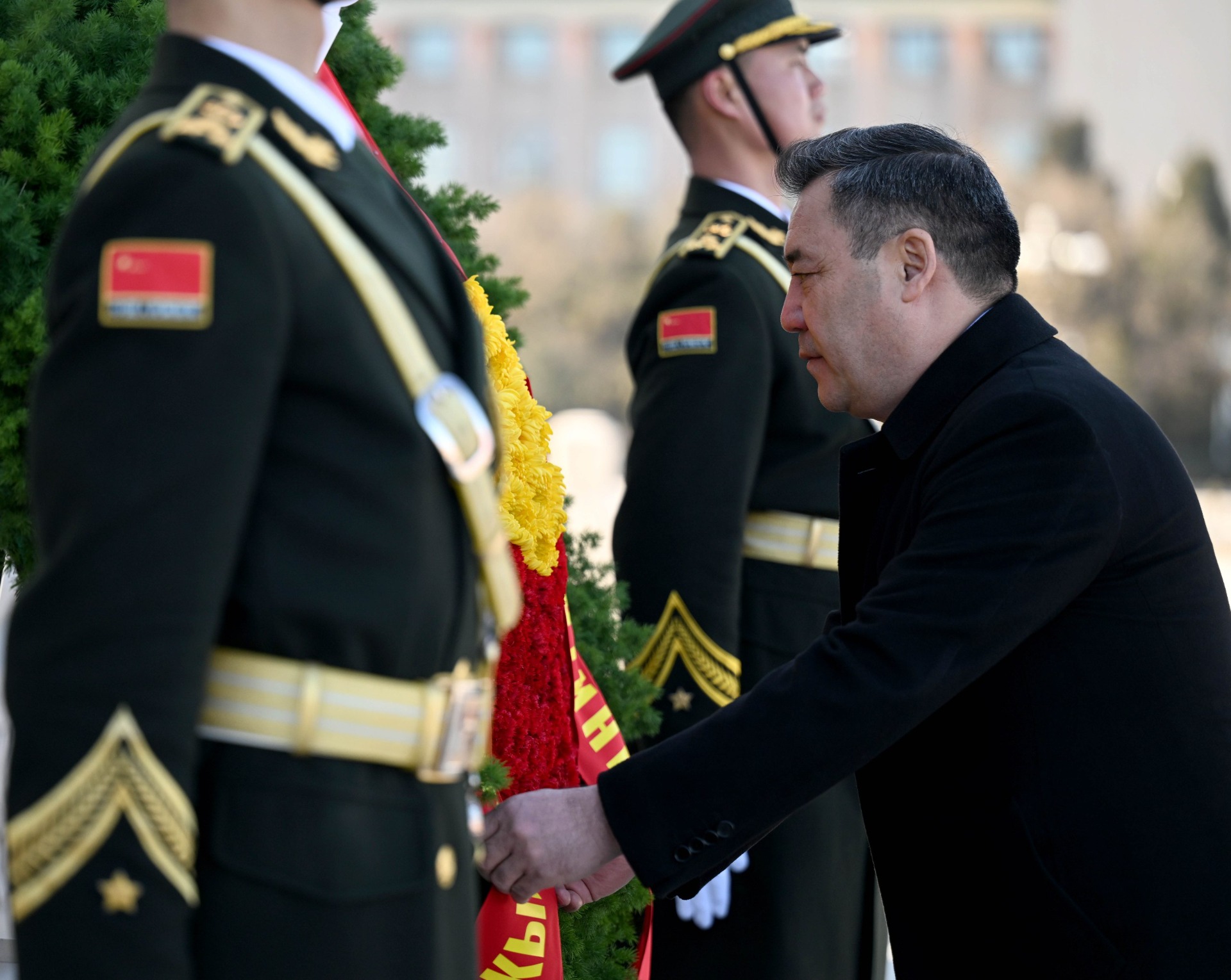 В рамках госвизита Садыр Жапаров возложил венок к Памятнику народных героев на площади Тяньаньмэнь в Пекине.