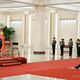 Главу кыргызского государства и первую леди Айгуль Жапарову встречали Си Цзиньпин и его супруга Пэн Лиюань. После взаимных приветствий и совместного фотографирования лидерам двух стран и их супругам представили членов делегаций.