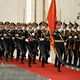На церемонии прозвучали государственные гимны КР и КНР в исполнении военного оркестра. Затем главы государств приняли рапорт командира роты почетного караула и совершили обход строя.