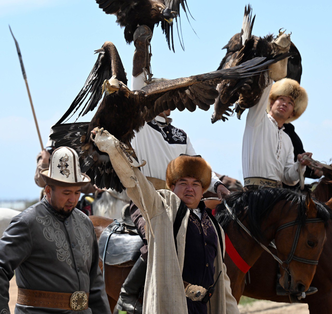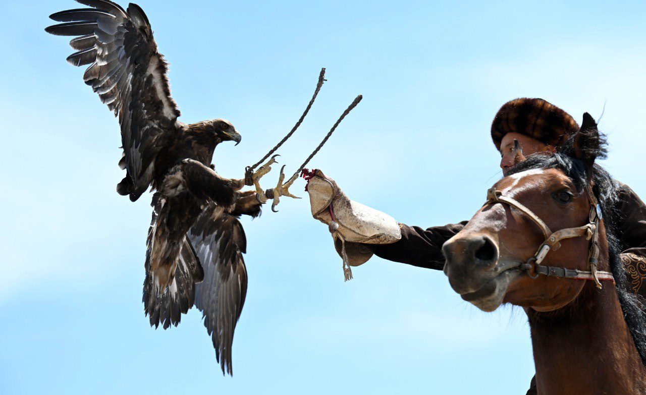 Затем прошли состязания по жорго салыш и кок бору. Гостям продемонстрировали элементы охоты с ловчими птицами и тайганами в рамках традиционного охотничьего искусства «Салбуурун».