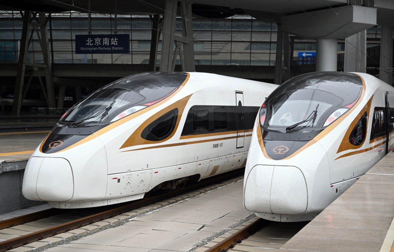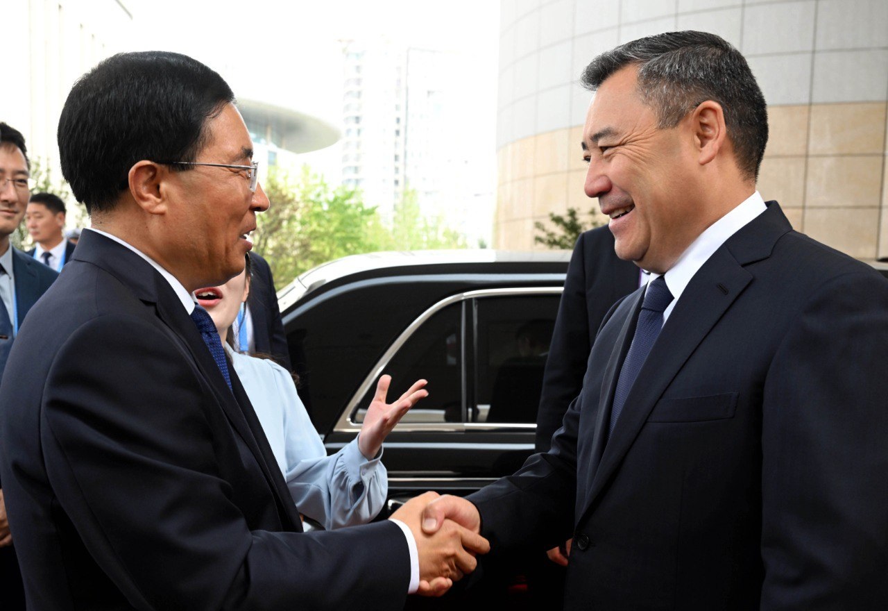 В столицу КНР Садыр Жапаров прибыл на скоростном поезде. На перроне железнодорожного вокзала расстелена ковровая дорожка, выстроены встречающие лица и дети с флажками Кыргызской Республики и Китайской Народной Республики.