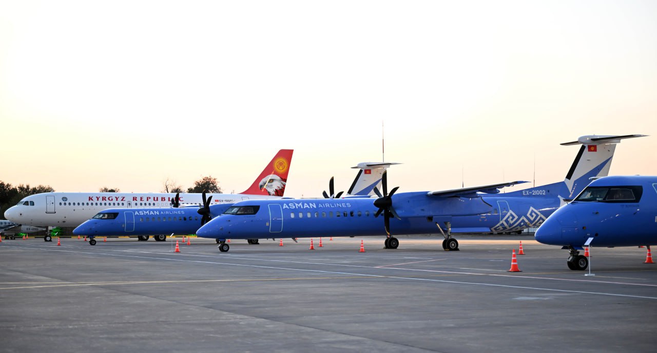 Далее Садыру Жапарову показали завершенные ремонтные работы на взлетно-посадочной полосе.