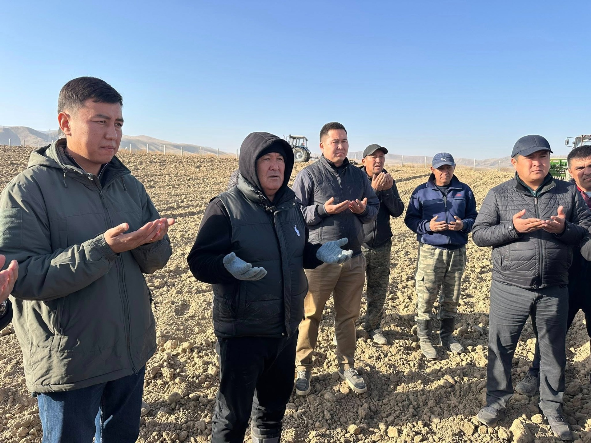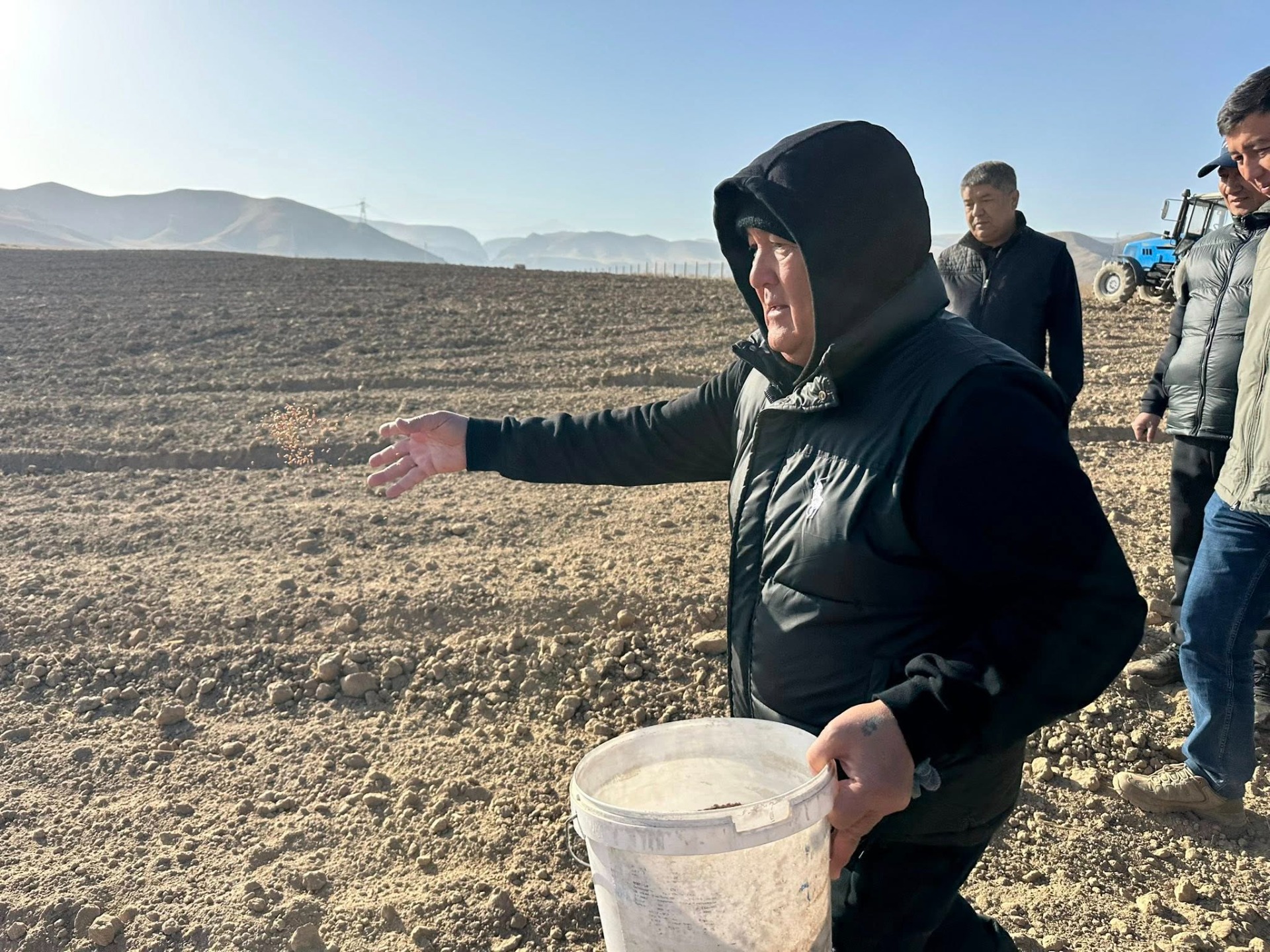 Уточняется, что Женишбек Токторбаев приехал в село Озгур и принял участие в посевной кампании.