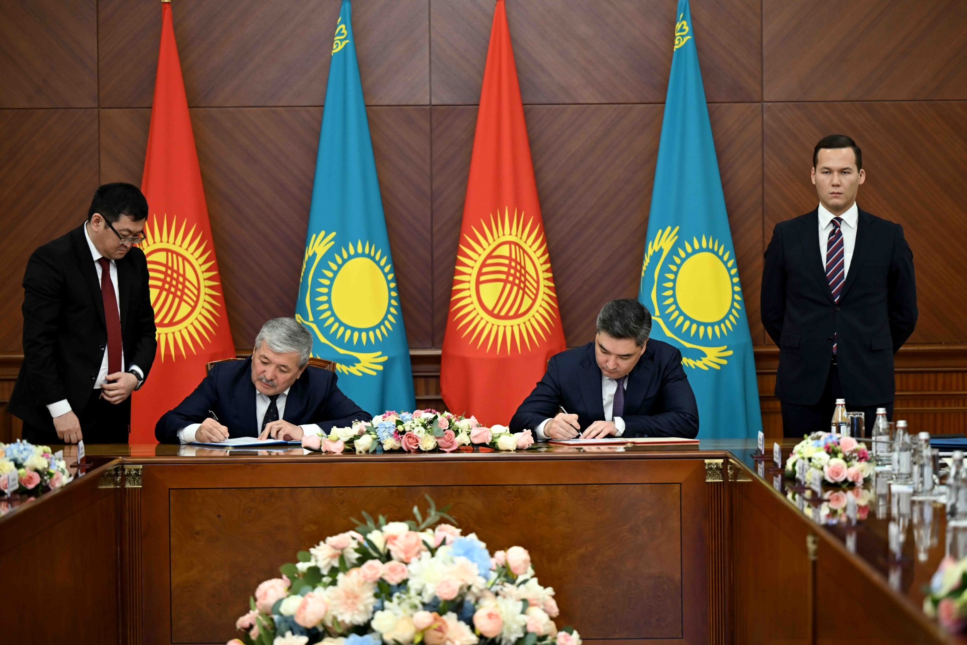 Заседание возглавили председатель кабинета министров КР Адылбек Касымалиев и премьер-министр РК Олжас Бектенов.