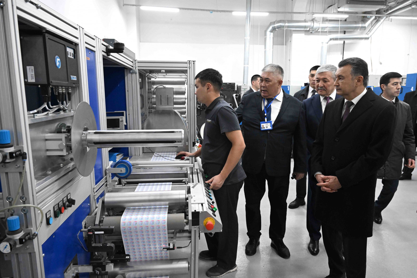 В компании «Учкун» главы правительств посетили переплетный и офсетный цеха, где изготавливается печатная продукция. Делегации продемонстрировали процесс производства акцизных марок, документов государственного значения, специальных бланков и государственных регистрационных номерных знаков. Также представили оборудование для маркировки и контроля качества топлива.
