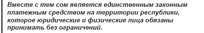 Министр экономики Арзыбек Кожошев отмечает, что курс сома определяет рынок. Но сегодня здесь есть проблемы. «Многие операции проводятся с использованием долларов. Это ослабляет национальную валюту. Ровно год назад по сравнению со средним курсом за декабрь 2014 года наблюдалось ослабление сома на 13,9 процента по отношению к доллару США. Оно продолжилось и в последующие месяцы. Вместе с тем, согласно Конституции, денежной единицей республики является сом. Да и по Гражданскому кодексу денежное обязательство должно быть выражено и оплачено в национальной валюте», - заявляет он.