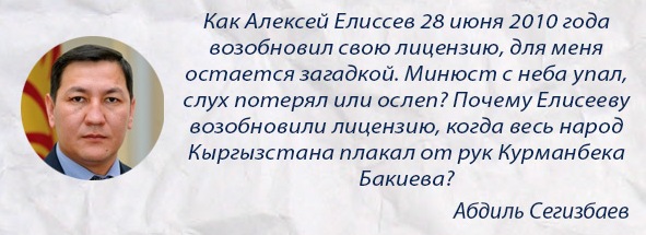 Министерство юстиции возобновило лицензию Алексея Елисеева после его бегства из страны. Об этом сегодня на заседании заявил председатель ГКНБ Абдиль Сегизбаев.