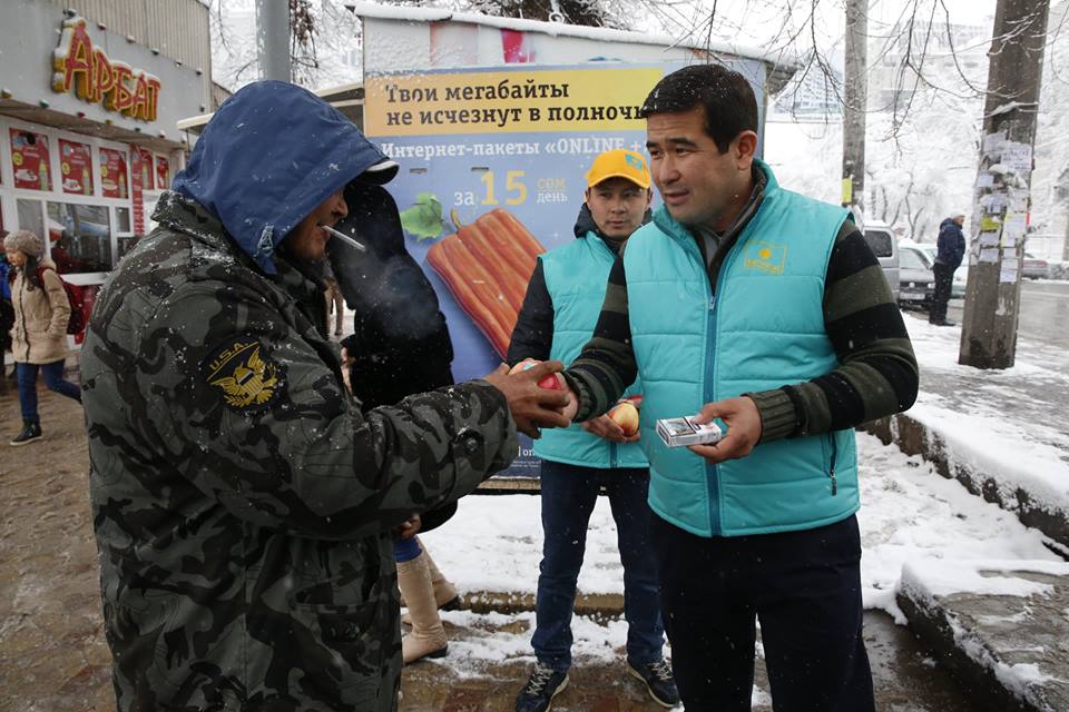 Вчера, 17 ноября, в Бишкеке отметили Международный день отказа от курения. Кандидат от политической партии «Кыргызстан» Курбанали Турабаев вместе с молодежью принял участие в акции, посвященной этому дню.
