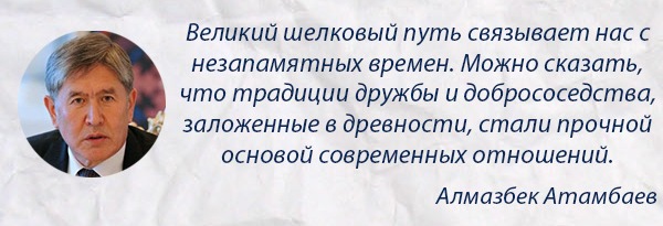 Алмазбек Атамбаев отметил, что за четверть века Кыргызстан и КНР совместными усилиями наладили активный политический диалог, взаимовыгодное торгово-экономическое и культурно-гуманитарное сотрудничество, эффективное взаимодействие в области безопасности.