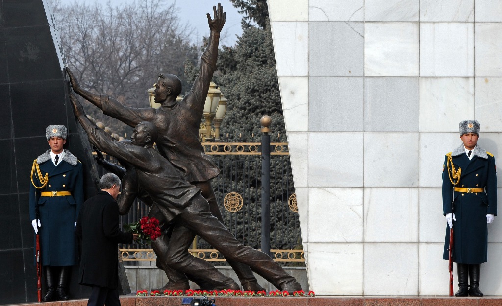 Глава правительства Сооронбай Жээнбеков и руководитель аппарата президента КР Сапар Исаков возложили цветы на месте аксыйских событий, прочитали молитву в память о погибших 17 марта 2002 года.