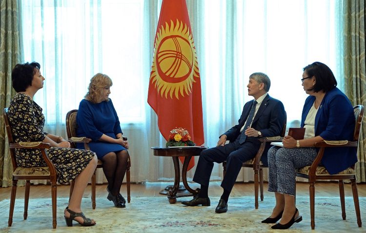 По его данным, президент в Государственной резиденции в городе Чолпон-Ате принял заместителя директора Института стран Азии и Африки МГУ имени М. В. Ломоносова Жибек Сыздыкову, профессора Алтайского государственного университета Юлию Лысенко и доктора филологических наук, члена-корреспондента Российской академии наук Анну Дыбо, принявших участие в работе Международного форума «Алтайская цивилизация и родственные народы алтайской языковой семьи».