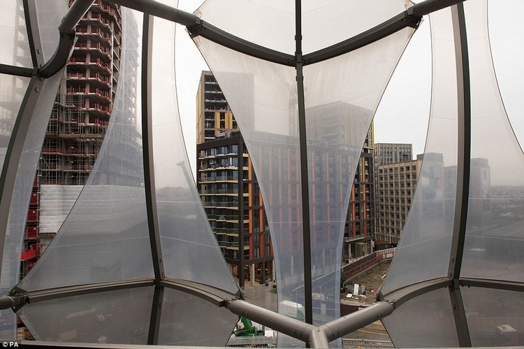 Фасад здания оснащен легкими пластиковыми «парусами», которые преобразуют солнечный свет в энергию. Также они защищают здание от перегрева.