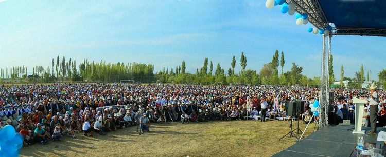 Более 10 тысяч жителей Аксыйского района собрались на стадионе в Кербене, чтобы выразить поддержку кандидату на пост президента Кыргызской Республики Сооронбаю Жээнбекову в предвыборных гонках. Уже до прихода кандидата на место встречи, во время концертной программы, избиратели скандировали его имя.