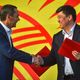 После заявлений двух политиков состоялось подписание соглашения об объединении.