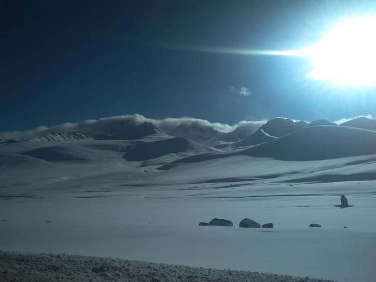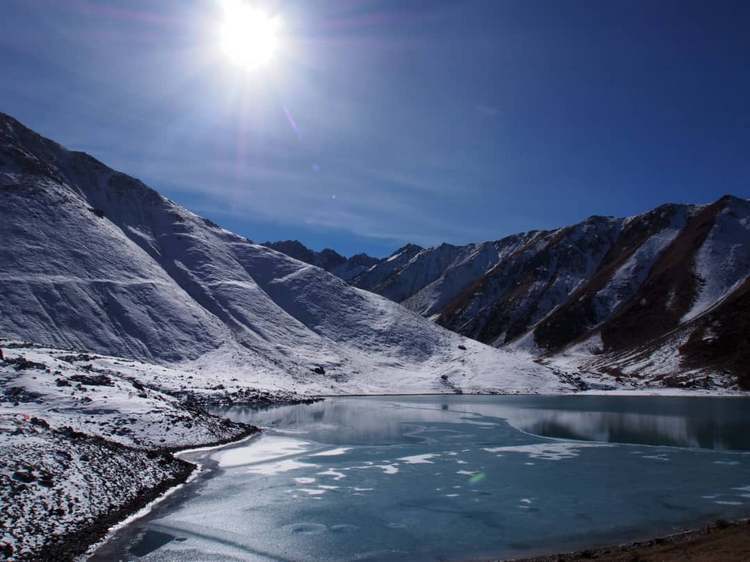 Выберемся теперь за город. Горы и ущелья Кыргызстана прекрасны и зимой. Один из наших постоянных авторов Евгений предлагает полюбоваться замерзшим озером Коль-Тор, которое часто попадало в нашу рубрику летом.