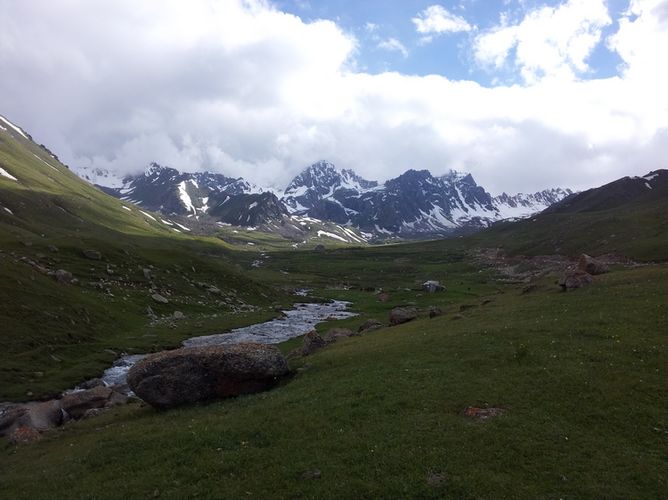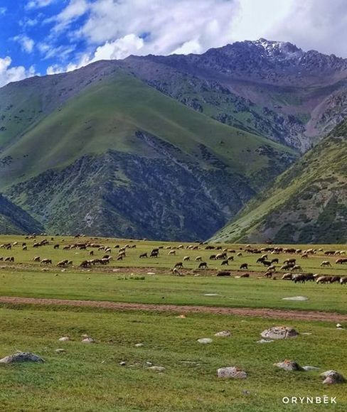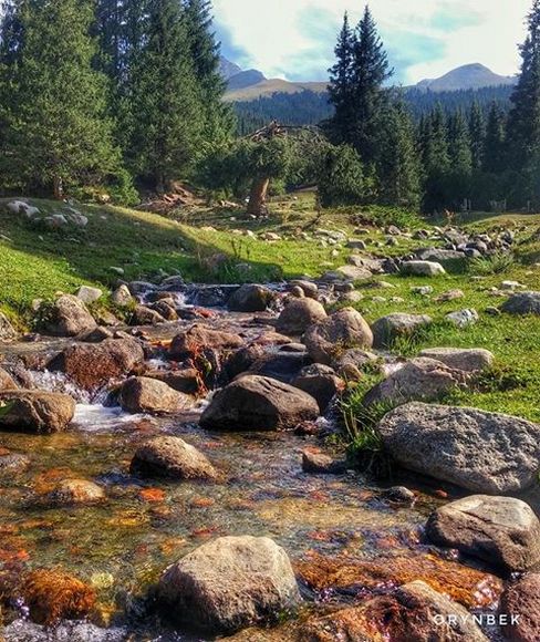 Привет из лета передала нам и Бурулай Мукамбетова. Она смогла добраться до места рождения реки Талас. Это высоко в суровых горах Таласской области.