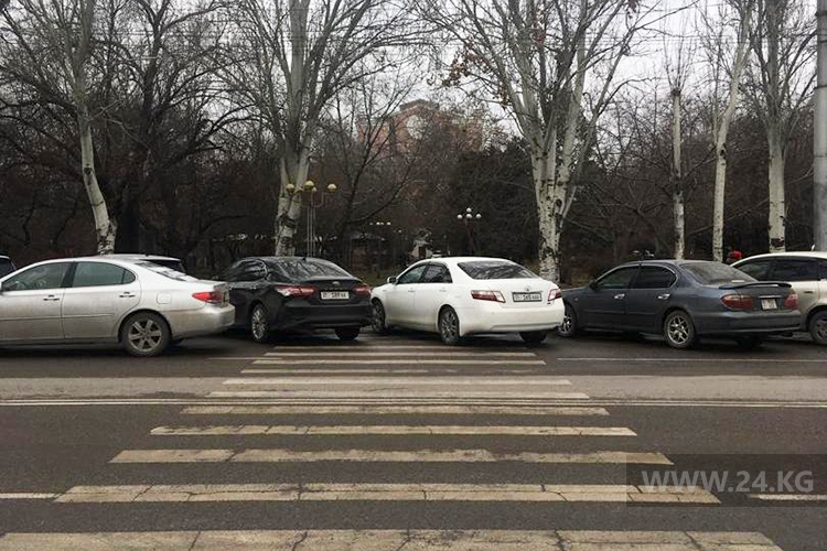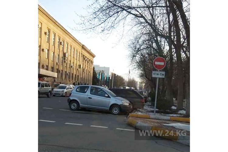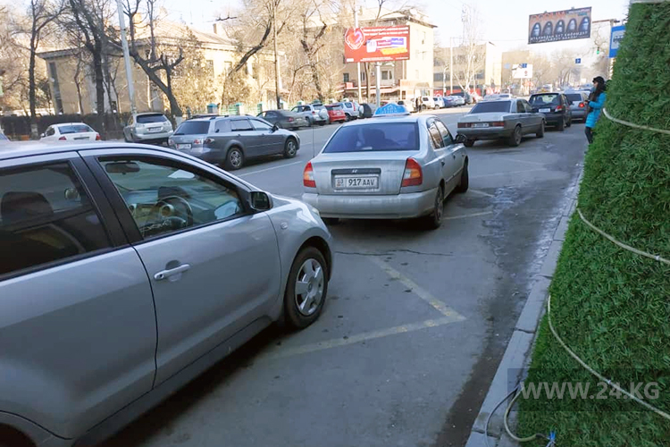 Бишкекчанин показал, как паркуются возле Дома правительства на улице Орозбекова. Стоянка должна осуществляться параллельно краю дороги, если нет знака с указанием другого способа, а также она запрещена на расстоянии менее пяти метров от пересекаемой проезжей части.