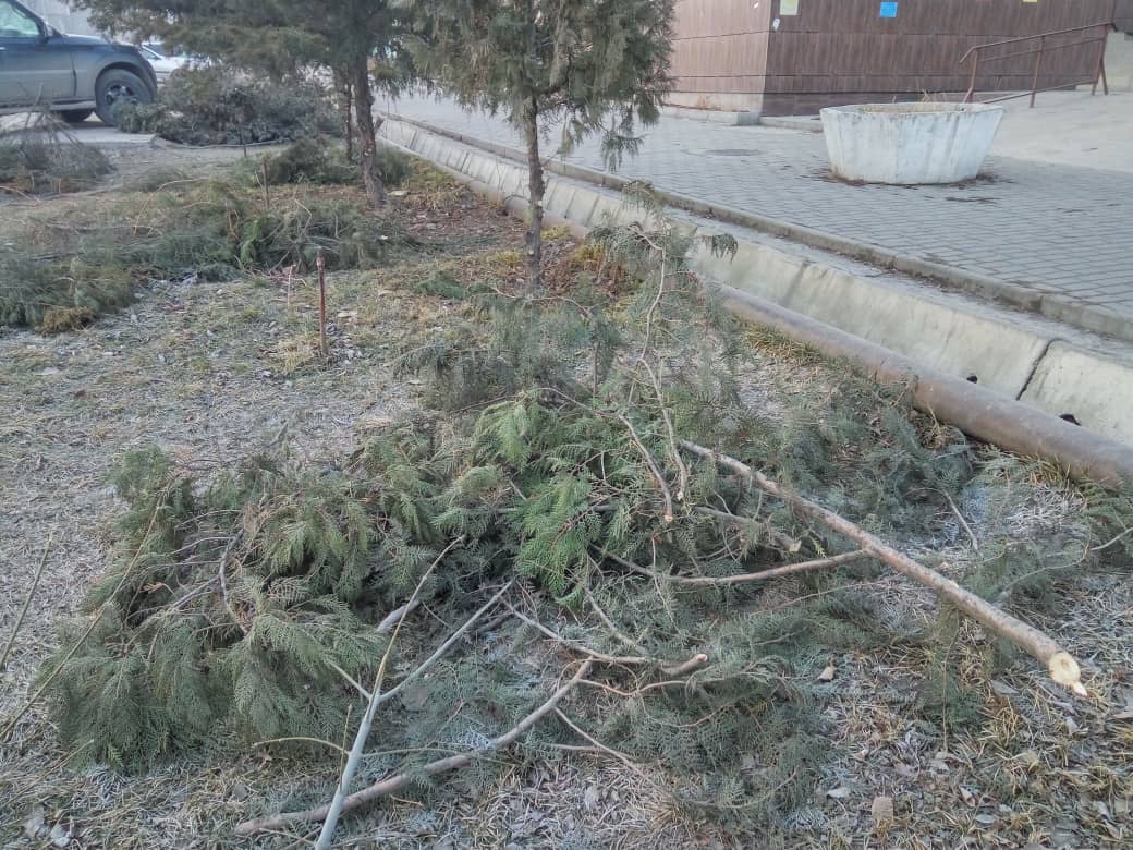 В Бишкеке варварски обрубают арчу. Об этом 24.kg сообщил читатель.